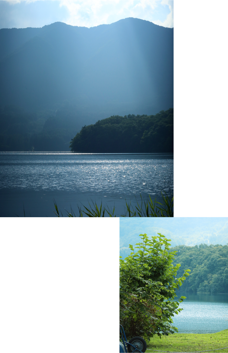 光に揺れ煌めく水面、水鏡にたたえる山並みや森の樹々。
