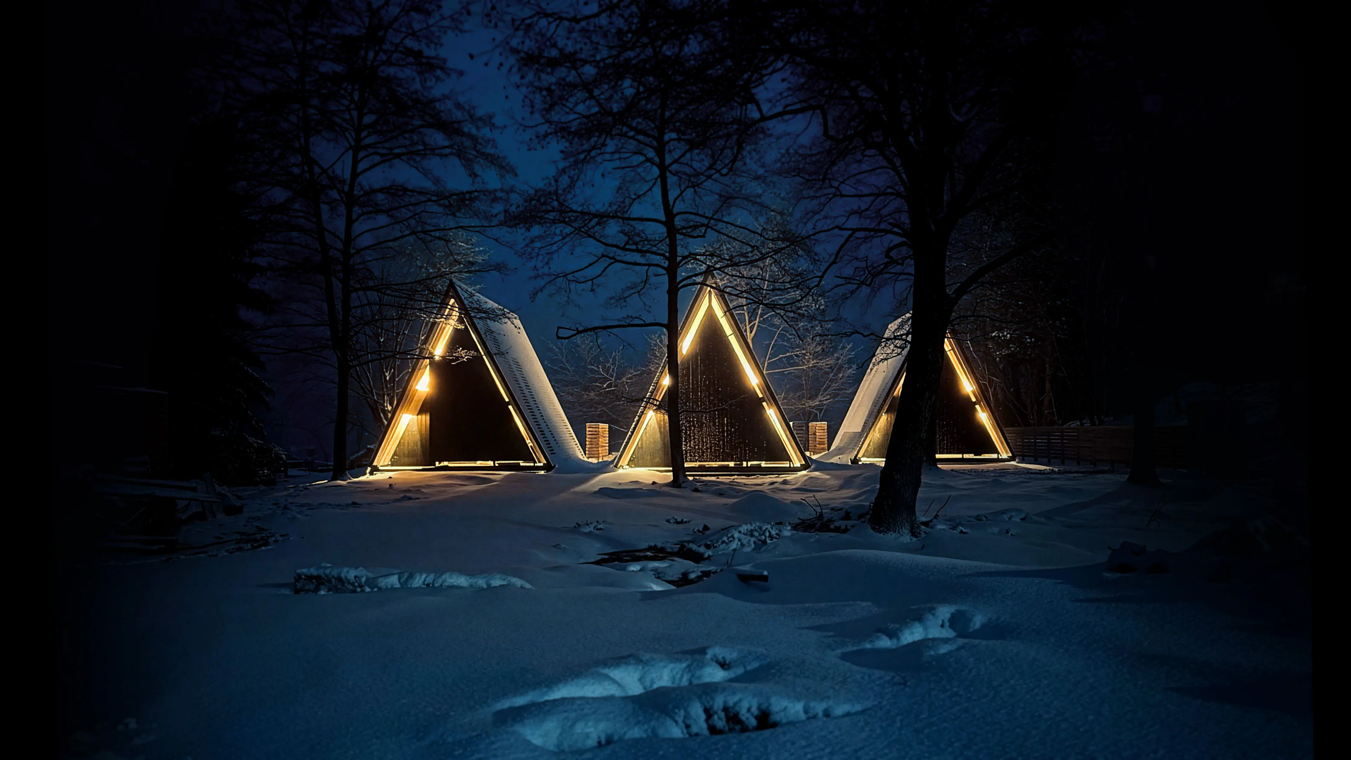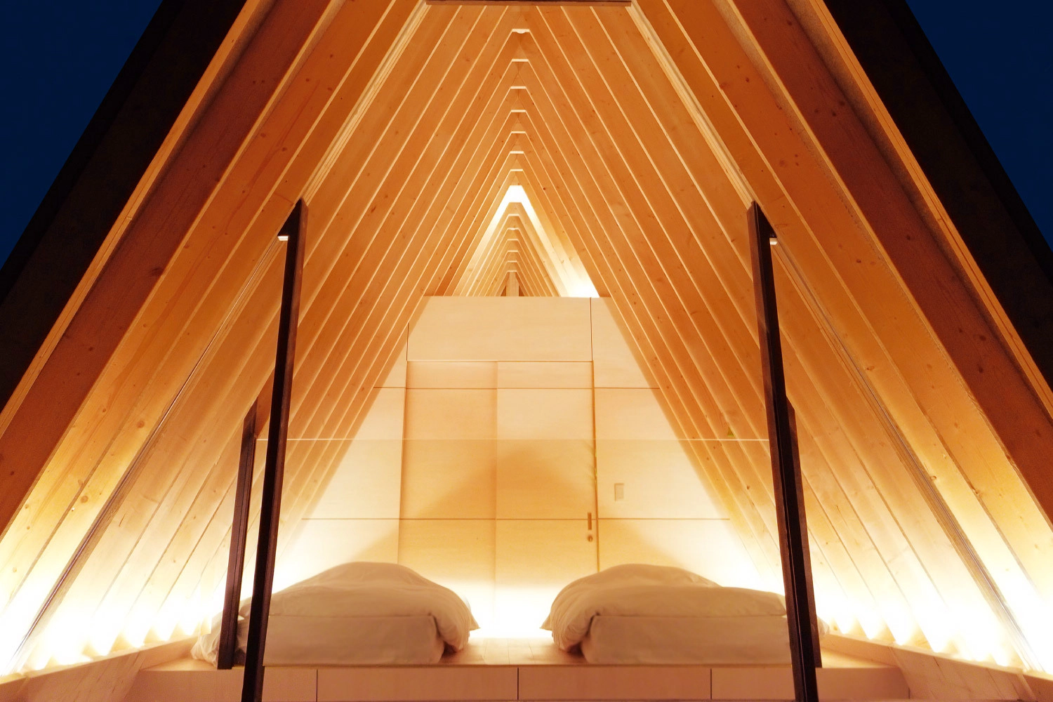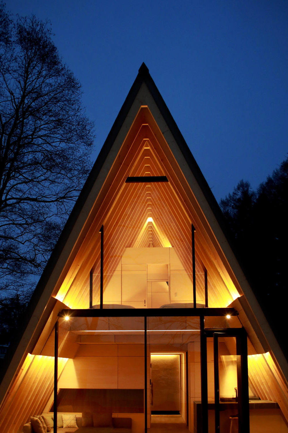 ヴィラは三角屋根が印象的なAフレーム型の建物で